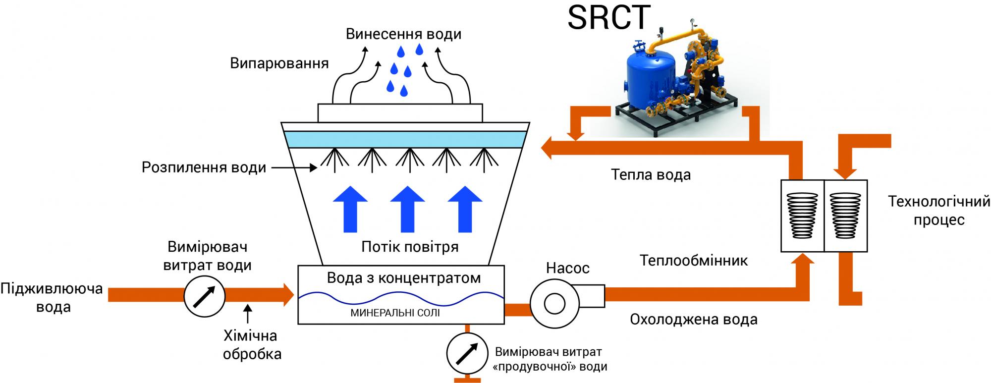 SRCT системи використовуються для забезпечення постійного очищення, запобігання утворенню накипу, видалення органічних забруднень і економії води в контурах градирень.
