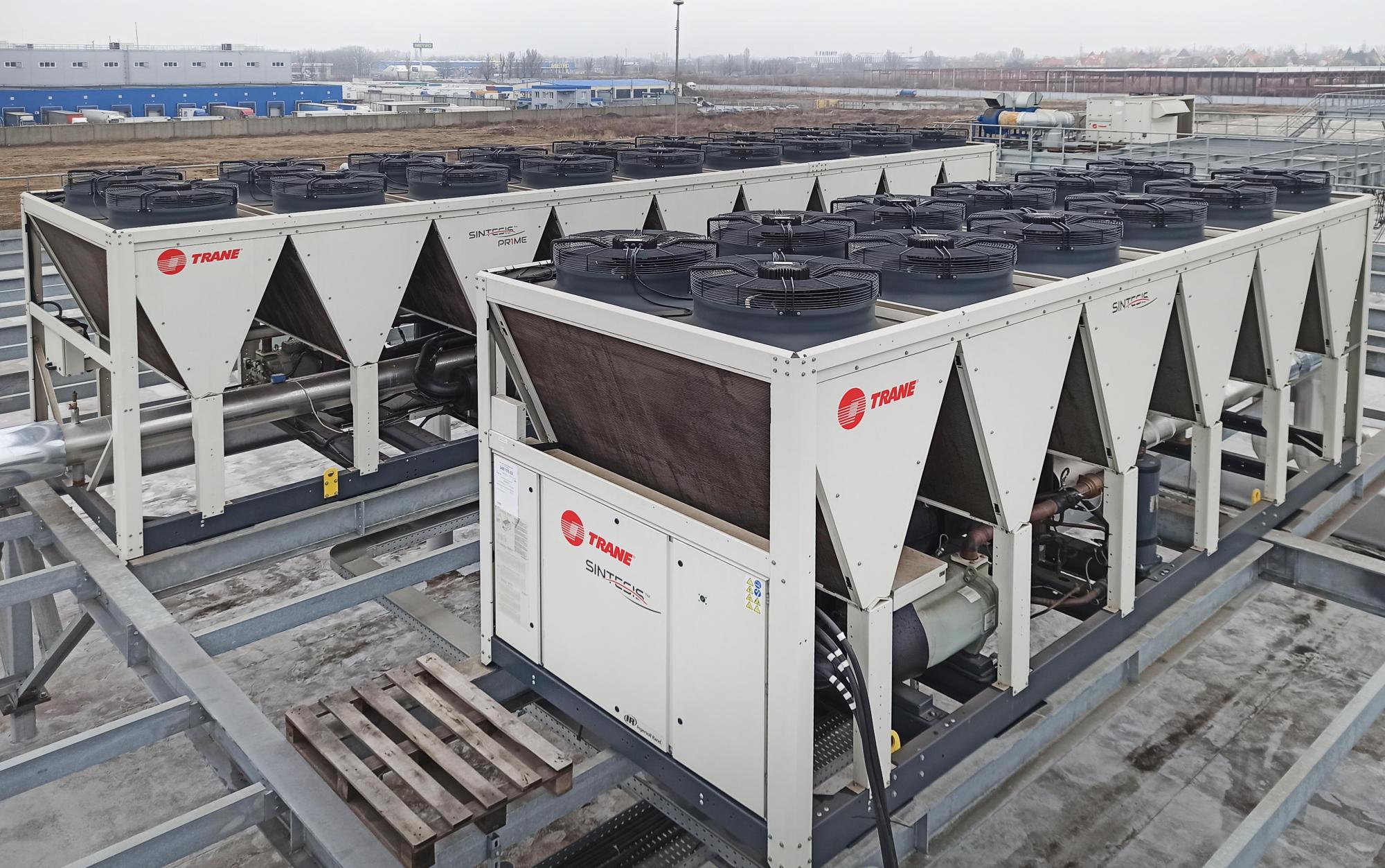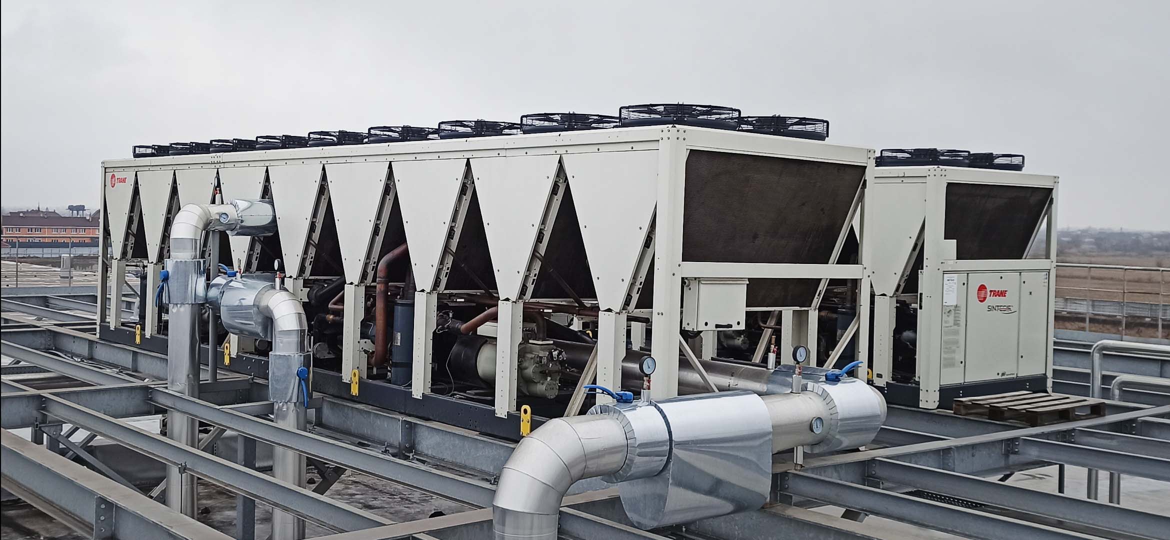 Проектирование, поставка, монтаж, обслуживание винтовых - чиллеров TRANE серии RTAF. Общая холодильная мощность более 1,5 MВт.
